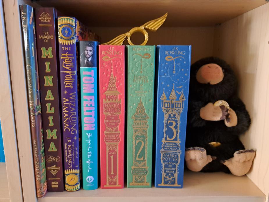 She-who-shall-not-be-named en deze prachtige editie van de eerste drie delen van haar boeken die werden uitgebracht door MinaLima waarna besloten werd om het contract niet te verlengen zodat nu een ander team de vervolgdelen uitbrengt. Delen die ik niet meer ga kopen maar een onvolledige reeks is eigenlijk ook een misvormde reeks hé.