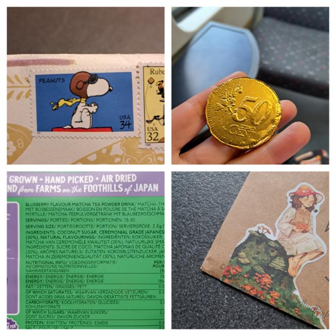 Maar ook van andere zaken kan ik blij worden. Een leuke postzegel op een envelop, die ene Amerikaanse dame die haar enveloppen steeds leuk versierd, de Sint die bij de kinesiste langskwam om dat hij vond dat al haar patiënten braaf waren.