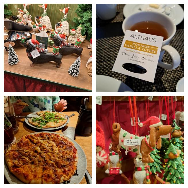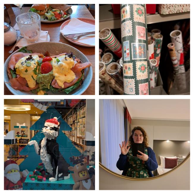We deelden onze lunch zodat we allebei twee verschillende zaken konden proeven, ik spotte een grote Lego kerstkat en zag ook inpakpapier dat ik even dacht te kopen voor mijn vake die filatelist is.