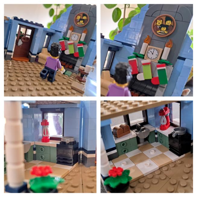 Maar ook heel wat andere leuke details. Van een uitgeruste keuken (hoe schattig is die keukenrobot) tot kerstsokken en een familieportret aan de schouw.