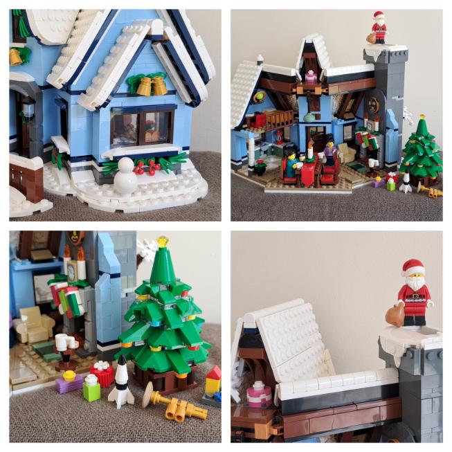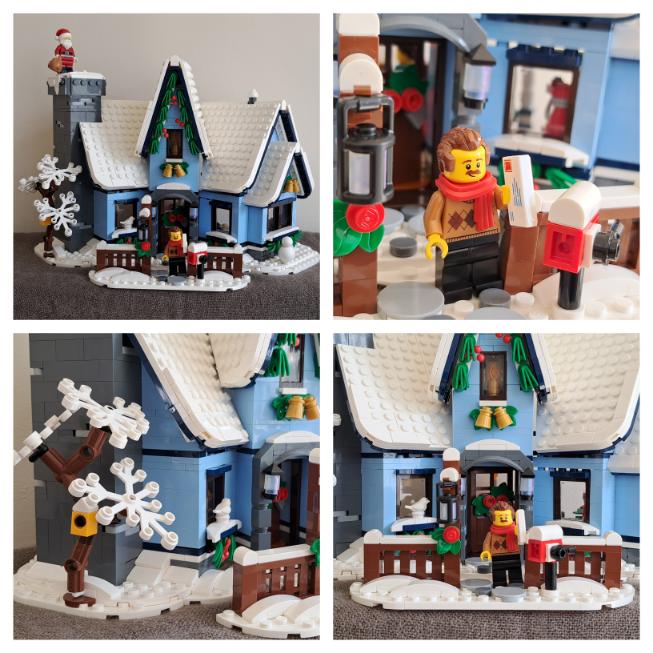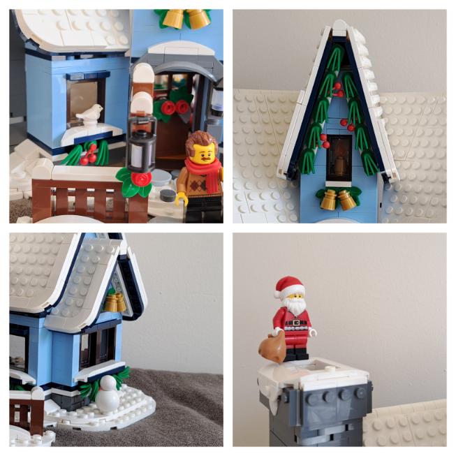 Een witte kerst maken we in werkelijkheid niet vaak mee maar deze set straalt wel echt de sfeer van een stille witte kerst uit. Besneeuwde boom en daken, kerstgroen aan de deur en zelfs een kleine sneeuwman in de tuin.