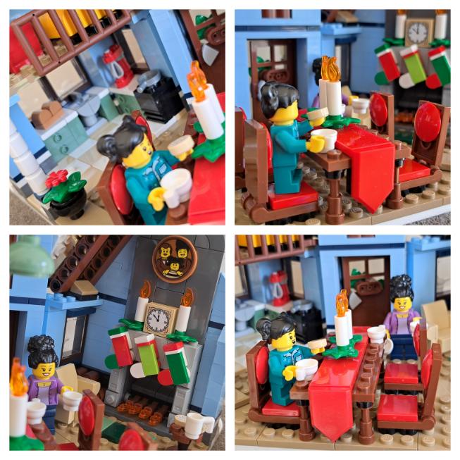 Ook de versierde kersttafel draagt bij aan de kerstsfeer in deze set.
