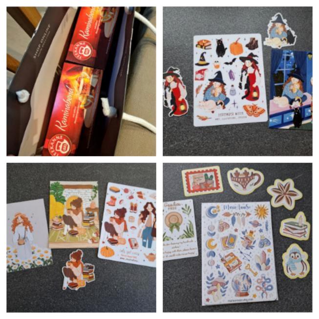 Stickers van MarieAnneSo (tweemaal een hele lading) die perfect van pas komen bij het versieren van mijn bullet journal en de maandelijkse Patreon Mail van Mei Illustrations die telkens aanvoelt als een pakje in de bus.