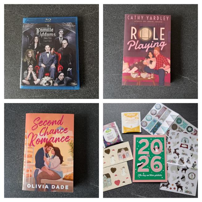 Van manlief kreeg ik op oudejaarsavond zowel de eerste Addams Family op bluray (nostalgie) als Role Playing van Cathy Yardley en Second Chancec Romance van Olivia Dade cadeau.