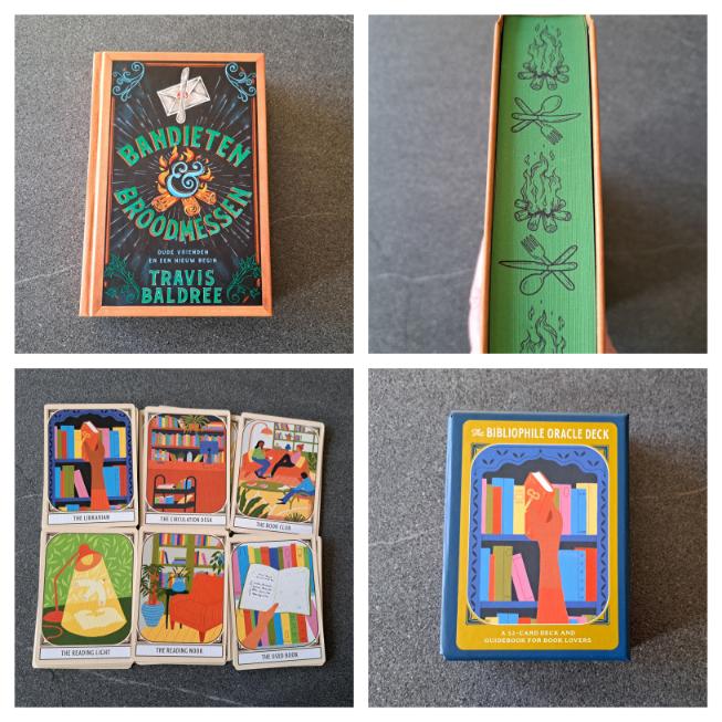 Van mijn schoonouders kreeg ik Bandieten & Broodmessen van Travis Baldree, The Bibliophile Oracle Deck
