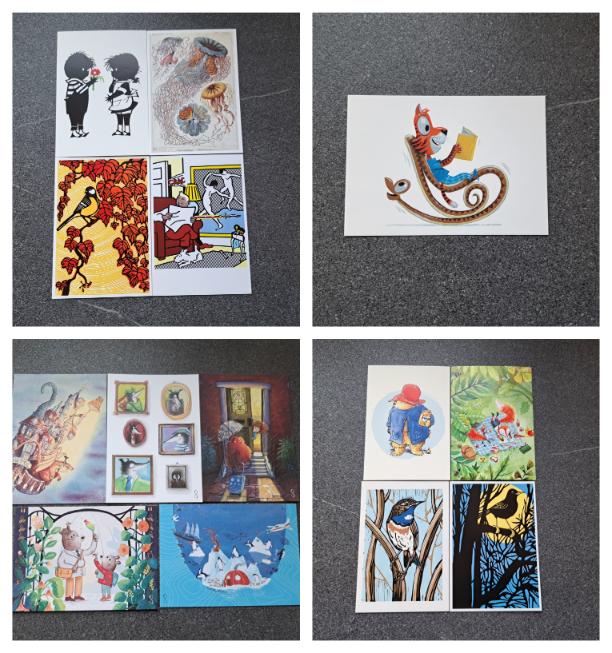 Bij de Groene Waterman vond ik heel wat mooie postkaarten voor een mooie prijs. Aan de kassa stond er ook nog een doosje met promokaarten van uitgeverijen die je gratis mocht meenemen. Mijn kaartenvoorraad voor swaps is dus weer wat groter geworden.