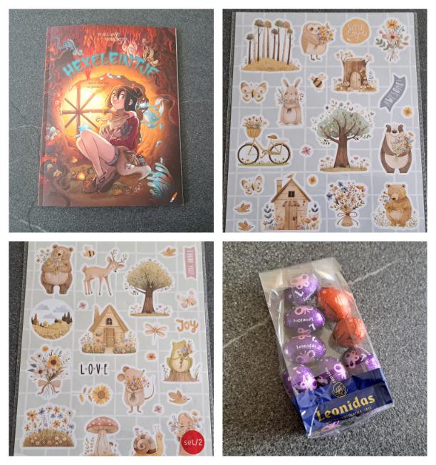 De maand afsluiten deed ik met mooie stickers van Action, enkele paaseitjes van Leonidas (die met cuberdon zijn nog steeds mijn favoriet) en de nieuwe strip van Hexeleintje.