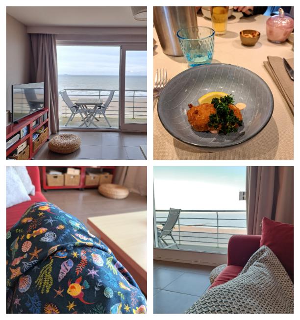 Dankzij mijn ouders konden we drie dagen naar de zee. We genoten er van dit mooie uitzicht konden genieten, hadden beter weer dan verwacht (maar echt, ze hadden super slecht weer voorspeld), ik at er een heel lekkere garnaalkroket en droeg een toepasselijke jurk van Popsy Clothing. Ik sliep er jammer genoeg nog slechter dan thuis maar rustig wakker worden met dit uitzicht maakte veel goed.
