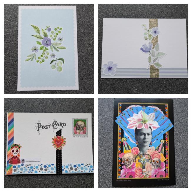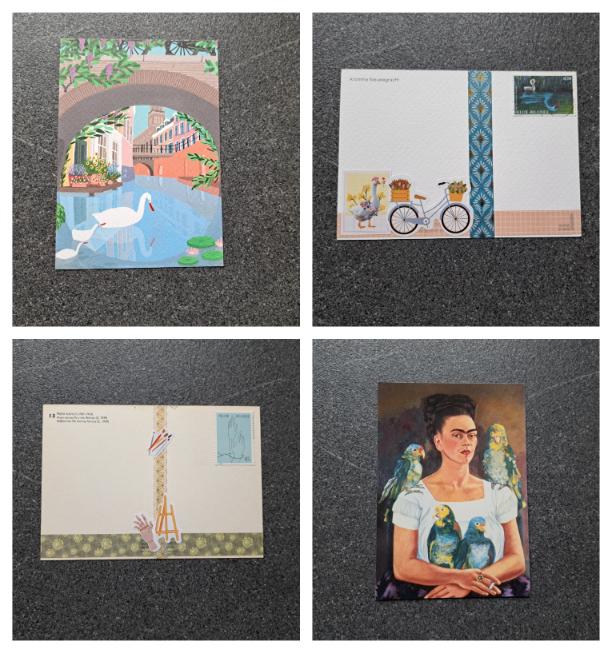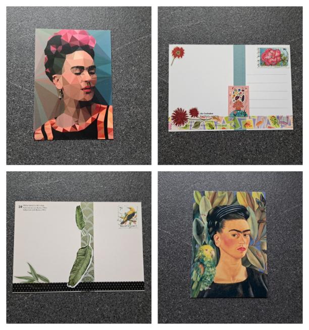 De Frida links boven kocht ik vorig jaar in Engeland. Gelukkig kan ik stilletjes aan terug beginnen aftellen naar een reis naar daar. Ditmaal naar Londen. Ik ben benieuwd of ik daar ook wat leuke postkaarten ga spotten.