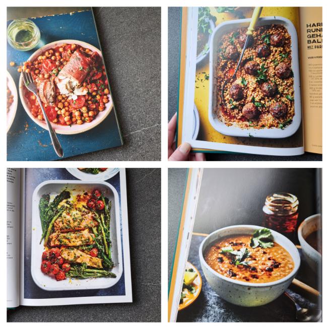 Ik besloot uiteindelijk om vier verschillende recepten te proberen vooraleer ik dit boek zou recenseren. Dat werden de Romige stoofpot met harissa en worstjes, Fluweelzachte kipshoarma, Mediterrane kabeljauw met peterselie-parmezaancrumble en Krokante gnocchi met burrata en groene pesto. Oftewel eentje met vlees, vis, kip en een veggie bakplaat.